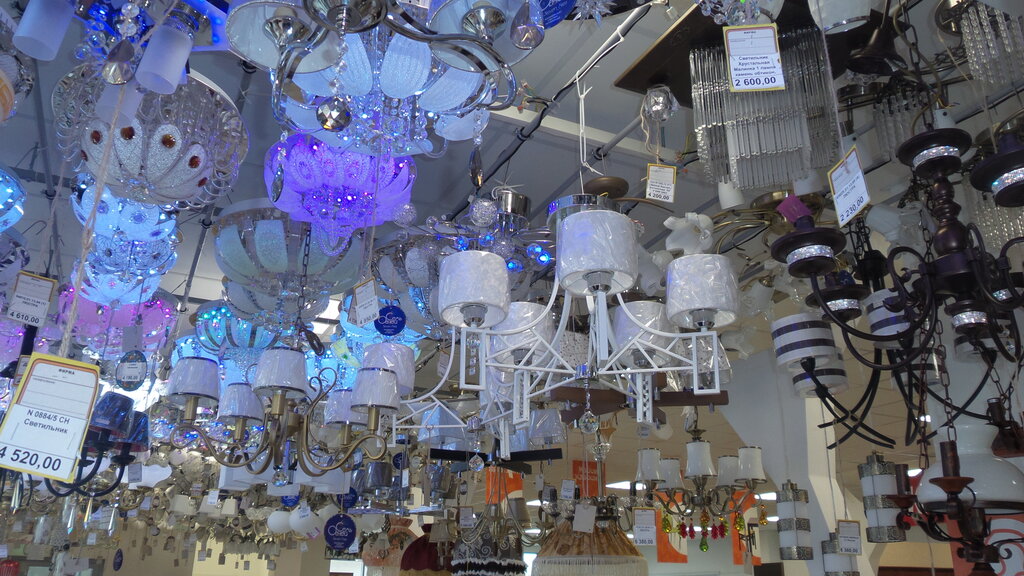 Большой выбор люстр по ценам и по качеству. Можно найти люстры под любой интерьер. Брал себе люстру в спальню, жена очень довольна (в люстре много режимов переключения, особенно нравится режим ночника, который меняется на выбор- синий и зеленый)