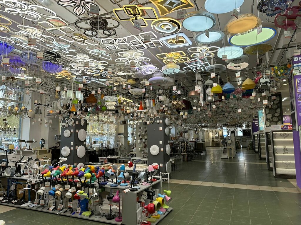 Хороший магазин! Расположен удачно, есть парковка, остановка маршруток в двух шагах. Ассортимент люстр огромный, большое разнообразие настольных ламп и светильников разного стиля. Тут же можно купить лампочки, это удобно. Но я, увы, ушла без покупки - нужен был торшер, выбор совсем не впечатлил. Зато обнаружила, что теперь в этом магазине можно купить обои. Это здорово !