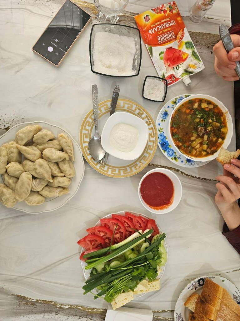 По дороге заехали в кафе. Хозяйка нас накормила отменным Лагманом!!! Курзе (пельмешки по русски:)) с домашней сметанкой тоже оценили! Будьте готовы, что порции большие:))