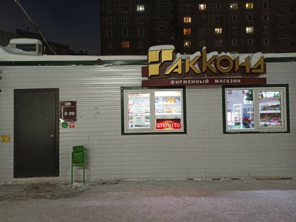 Магазин реализует продукцию кондитерской фабрики Акконд, кроме этого есть пирожные, газвода, печенье, мопоженое. Приветливые продавцы, чисто, есть скидки по дисконтной карте. Я постоянный покупатель здесь.