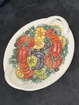 Красота, керамика ручной работы, видны несовершенства при росписи, что делает изделие ещё более потрясающим! Сразу скажу что за стеклом всё выглядит хуже, в руках это произведение искусства! Продавцы не навязчивые и немного потерянные, но для нас это плюс (не любим когда за нами ходят и что то болтают). Всё показали, что просили. Расстроила упаковка, небрежная в крафт и скотч, целлофановый брендированный пакет. Взяли чайную пару и хлебницу с раками