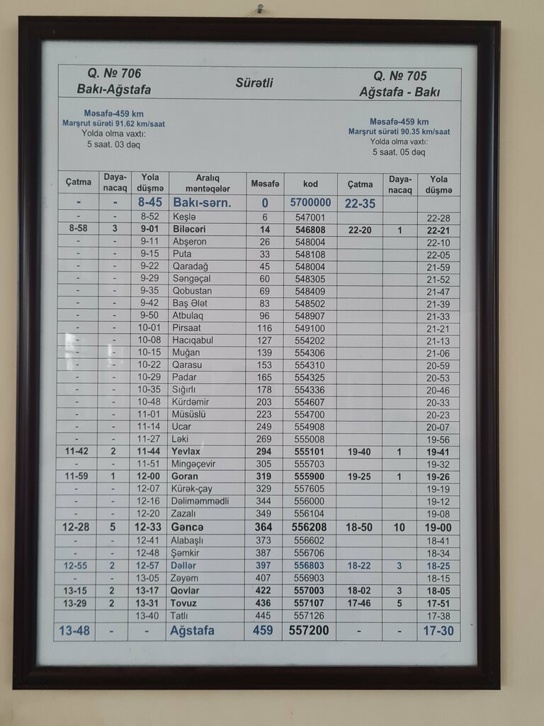 The schedule of tariffs as of June 2024. Also, on weekends, an additional train from sitting cars can be scheduled (from Baku at 09:15 on Sat, from Akstafa at 15:00 on Sundays), fares are in addition.The train is below
