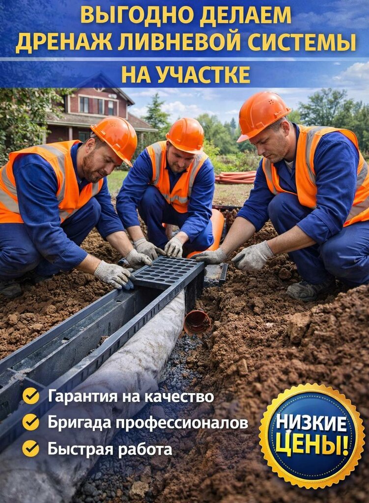 Дренаж участка и водоотведение в Москве и Московской области — монтаж дренажной системы под ключ на даче, осушение участка, защита фундамента от воды, ливневая канализация, земляные работы, профессионально, быстро, с гарантией
