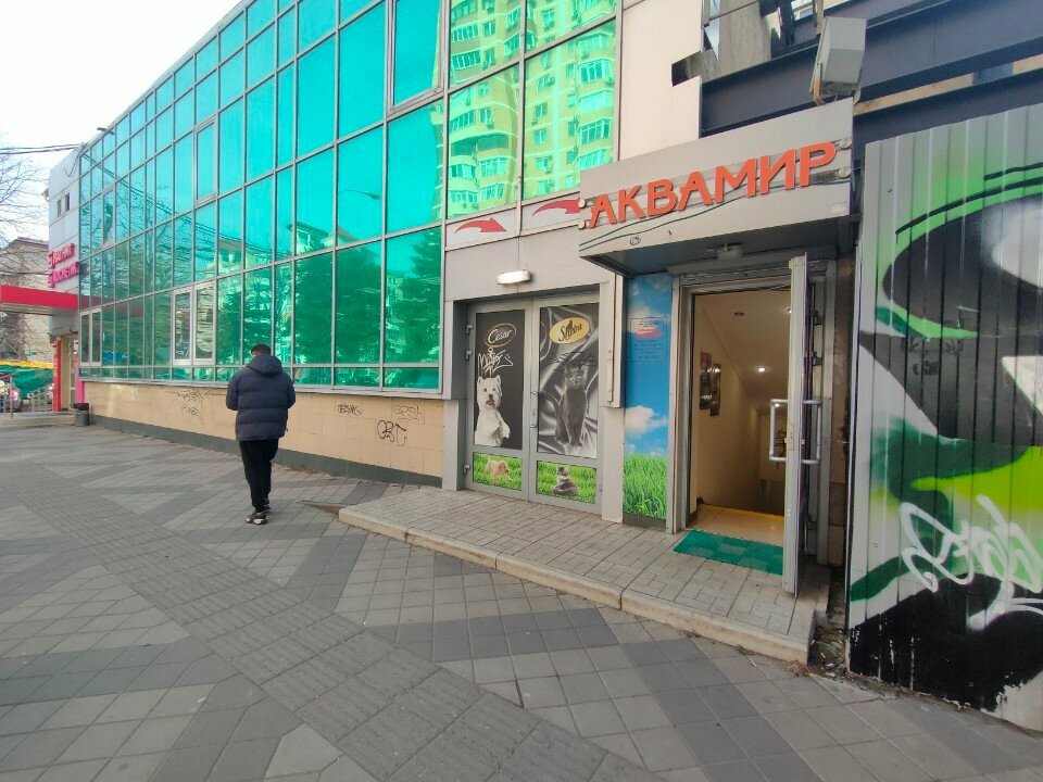 Сначала мне тут не понравилось, но это лишь потому, что мне не возбуждает запах корма для животных, которого тут дофига разного. Затем меня насторожила завышенная цена круглого аквариума, который я искал. Через 3 квартала я видел точно такой же, но дешевле. Но затем мне пояснили, что есть разница между стеклом для аквариума и для вазы. Для аквариума оно прочнее, прозрачнее и не искажает картинку. Я присмотрелся и понял, что это действительно так. Надо же! А затем я купил подходящий небольшой аквариум дешевле, чем видео на авито. Кароче я доволен, все есть в одном месте рядом с домом.