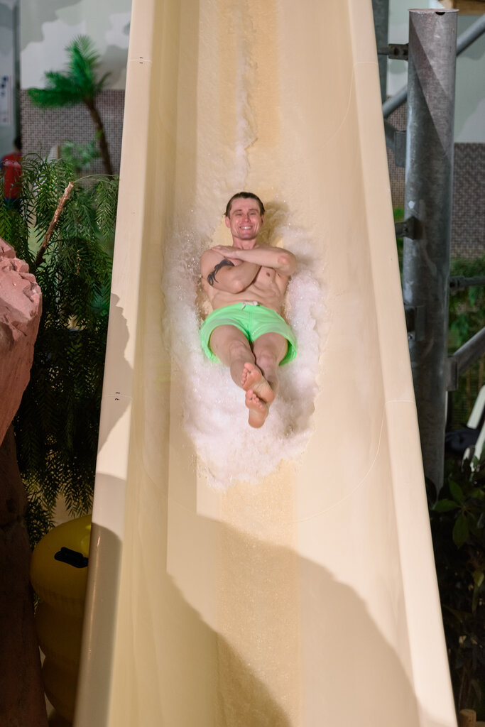 Классный аквапарк, много Горок для всех от мала до велика. 3 бани с разным диапазоном температуры, плюс хамам, примерно раз в 5 минут проходит сотрудник и проверяет температуру, если она не соответствует то её повышают. Есть купель воистину лёд), бассейн с волнами под тип морских, и несколько бассейнов для малышей. Есть буфет. И очень вежливый и профессиональный персонал. Мы были очень довольны, сын так вообще уходить не хотел)