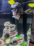 Магазин нравится, не сильно дорогой, всё необходимое есть. Продавец мужчина очень доброжелательный, видно, что увлечён своей работой и много знает. Проконсультировал по содержанию петушка. Продавец женщина тоже вполне нормальная. Большинство рыбок содержатся нормально, видели даже крабов, креветки наверняка тоже в наличии. Из минусов- в магазине темно, но возможно так нужно для комфорта рыбок. Петушки содержатся в малюсеньких стаканах. Наш петушок очень красивый, купили за 450р. Но когда приехали домой, увидели, что есть что-то похожее на плавниковую гниль и ранку на теле. Возможно мне кажется, тк петушок в целом активен и не отказывается от еды. Фото петушка в аквариуме и в стакане из магазина приложила. Зовут нашего малыша Никель)