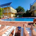 Прекрасное спокойное место для семейного отдыха. Чисто, приветливый персонал, в номерах просто, но чисто, есть кондиционер, телевизор, холодильник, душ, туалет. Хороший чистый бассейн. Море в 10 минутах через парк. Рекомендую посетить!