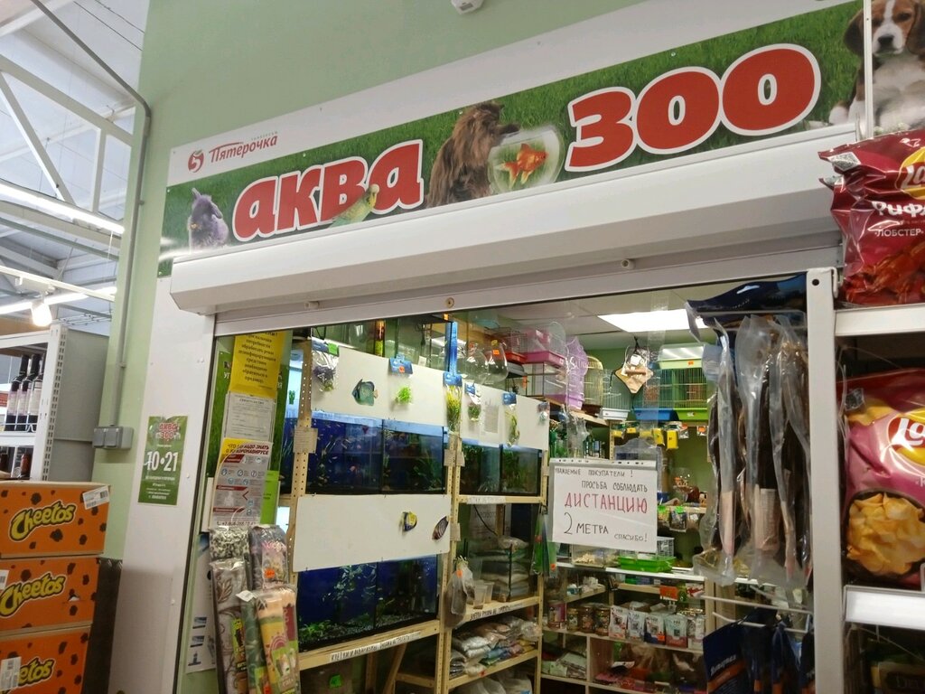 Aква ZOO маленький ,но очень вместительный магазинчик где Вы сможете купить аквариумных рыбок,аквариумы,террариумы, корм для всех животных и попугаев,канареек. Аксессуары для собак и кошек,биоошейники,корма премиум класса д/кошек и собак,разные лакомства и вкусняшки для ваших питомцев. Вежливый персонал,любящий животных,все посоветуют и подскажут. Рекомендую к посещению. Удобный график работы с 10 до 21 часа.
