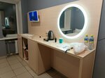 Хороший отель. Вокруг тихо, не слышно городского шума. Очень низкие цены, наверное, самые низкие цены в городе. При этом расположен недалеко от аэропорта, удобно выезжать на объездную дорогу. Номера большие, чистые, светлые. Очень удобные матрасы на кроватях, чистое белое белье, можно отлично выспаться. На территории отеля работает кафе, где можно вкусно и недорого поесть. Приветливый персонал, в номерах чисто, есть огромная парковка- что еще нужно путешественнику?