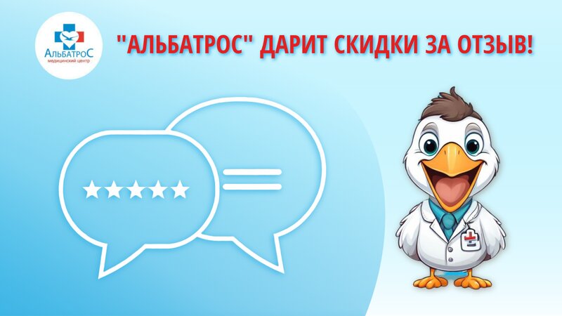 “Альбатрос” дарит скидки за ваши отзывы! ✨ Поставьте оценку или оставьте отзыв на Яндекс.Картах, покажите администратору при визите в медиц...