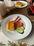 Всё хорошо, были транзитом на одни сутки. Номера, конечно, уже просят косметического ремонта, но в целом не плохо. Не мешало бы обновить душевую систему, сейчас она явно устарела и поизносилась. Дворик очень уютный. Завтрак - не шведский стол. На выбор 2 блюда из меню + чай/кофе. Основное блюдо, естественно, омлет, а на второе - сырник, блинчик или что-то подобное, вообщем маловато) На просьбу официантке принять заказ спустя 15 мин после прихода услышали «вас 20, а я одна»)) такое я давно не слышал, думал такой рудимент совка давно отмер, но нет) Благо, девушка, реабилитировалась, обслужила довольно быстро, пролитое случайно кофе оперативно заменила. Расположение удобное, но вид из окон оказался на какие-то теплицы или что-то подобное. В целом для транзитных туристов вполне не плохое место, чуть подтянуть сервис и немного освежить интерьеры и будет очень хорошо.