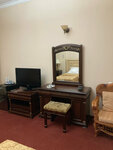 Обшарпанный номер за 6000 сутки! Облезлые стены, отваливающаяся лепнина, грязные потолки. Унитаз не работал. Вместо простыней теплые одеяла на кроватях. И это в августе месяце. Дверь в номер не закрывается. Холодильника нет. Телефона для связи с ресепшен нет. Какие-то мошки летают по номеру. Завтрак с 9:00 до 11:00, а не с 7:00 как во многих других гостиницах. А главное, лающие по ночам собаки, живущие на территории гостиницы. Они даже на диванах в холле валяются. Бардак полнейший.