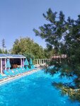 Вид бассейна неплохой, вроде чистый, около него есть деревья зелень ёлки и тд , но он очень холодный, официанты не предупреждают о задержках по кухне когда у них проходят завтраки, бургер несли 60 минут в итоге я отказался, потому что официант на очередной мой вопрос что с моим заказом, молча покачал головой, (это край я считаю) сотрудники кухни и неопознанные лица вместе с администратором курят прям на виду у гостей, практически возле бассейна, не советую место. Видно что из профессионалов тут только терминал для оплаты. Еще мухи тут частые гости они их видимо разводят специально