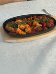 Сочный стейк из телячьей вырезки в сочетании с овощами и пряностями. Хрустящие картофельные дольки и ароматный бекон добавляют блюду сытности. Помидор придаёт лёгкую кислинку, а кунжут - приятный ореховый привкус. Заправка на основе свит чили делает
