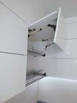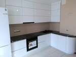 Кухня выполнена в современном стиле до потолка. Материал: корпус ЛДСП 16 мм, фасады МДФ ПВХ, столешница пластик 38 мм, направляющие скрытого монтажа с доводчиками,подъемные механизмы Hafele, профиль Gola, светодиодная подсветка, сушка хром.