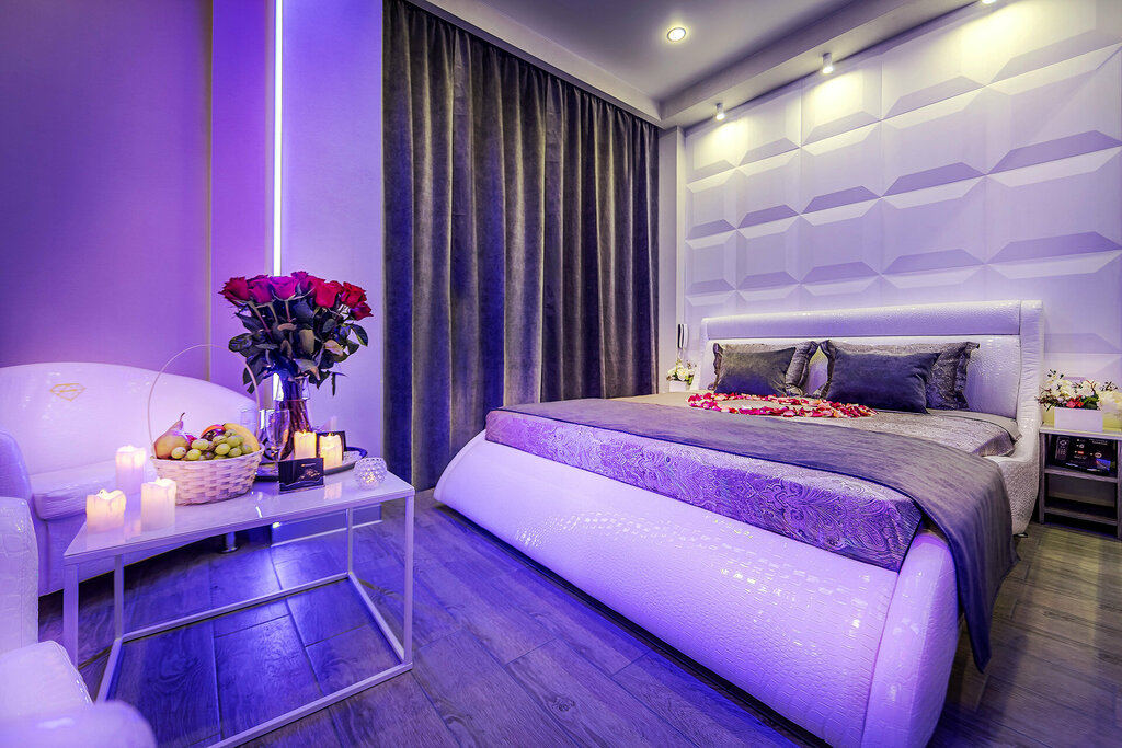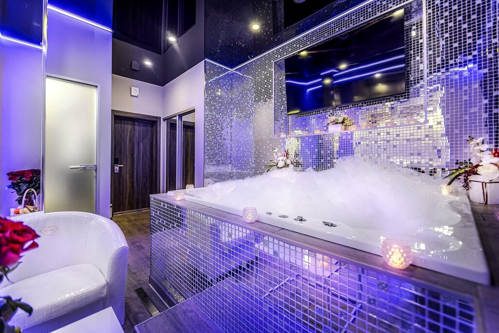 Отель формата мини на несколько номеров В коридоре даже есть мини бар , где можно купить алкоголь/конфеты / снеки Мы жили в номере 10 и очень понравилось , что у джакузи есть подиум и телевизор сверху ! А также давно интересно было поспать на круглой кровати)) Отдых максимально комфортный , никаких посторонних звуков нет Сверху над джакузи висит кондиционер, что позволяет циркулировать воздуху и нет такой сильной влажности ! Администраторы очень вежливые и клиентоориентированные Остались очень довольны , всем рекомендуем )