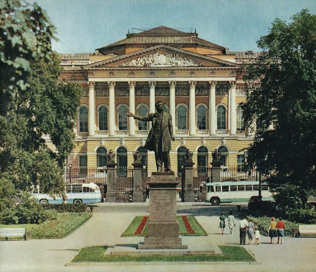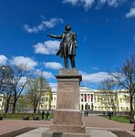 Площадь Искусств. Когда приходишь сюда и смотришь на эту гармонию: Михайловский театр, провал Бродячей собака, музей квартира Бродского, Филармония, Государственный Русский музей, театр музыкальной комедии, театр им. Комиссаржевской и в центре памятник Александру Сергеевичу Пушкину. Кажется, что так было всегда! Памятник по проекту выпускника Академии художеств Аникушкина поставлен только в 1957 году. Пушкин смотрит на Невский проспект, лицо одухотворенное, рука простирается и показывает на храм Спаса на Крови. Вокруг памятника приятный, тихий сквер с дубамм. Очень люблю сдесь бывать в любое время суток и года. Всякий раз новые ощущения приобщения к прекрасному.