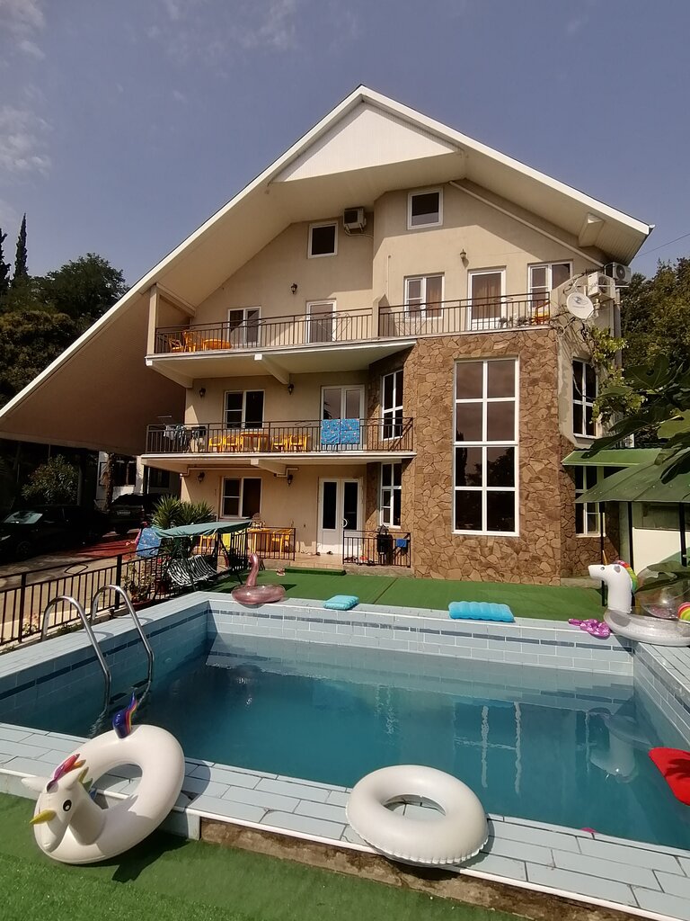В общем о гостинице можно сказать : как дома!)) до моря 5 минут, двухместный номер 2 т.р. сутки. На территории бассейн, парковка на несколько машин. На кухне можно готовить самостоятельно, в комнате холодильник, кондиционер, телевизор, шкаф для одежды, комод, чистое белье и полотенца. Беседки, мангал, даже караоке есть)) все как я люблю ❤️