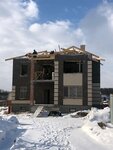 Добрый день! Строительство дома мы почти завершили, сейчас занимаемся внутренней отделкой и благоустройством территории. Сложностей в строительстве не возникло никаких, проект очень понятный и подробный. Благодарю за прекрасный проект! Дом возводился максимально по проекту, но все же мы внесли небольшие изменения. Во-первых, мы положили бетонные плиты-перекрытия на потолок второго этажа, т.к. крыша у нас из цементно-песчаной черепицы, перестраховались из-за веса черепицы. Немного расширили террасу, устроив под ней в цоколе бассейн (чаша бассейна 2,4*4 заглублена в фундамент), выход с террасы развернули в другую сторону. И трубы на крыше мы сделали из кирпича, а не оштукатуренные. За время строительства дома мы возвели также хозблок и мангальную беседку. В настоящее время осталось построить ворота и навес для автомобилей, с этим есть сложность, т к. участок трапециевидной формы. Прилагаю фото с разных этапов строительства