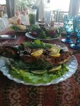 Нам всё понравилось порции были хоршие,шашлык из баранины был шикарен,но когда пришли у нас минут 20 не принимали заказ, официант не торопился от слова совсем,второй официант чьими не являются столы пришел и в итоге принял заказ. Люля подкачали все разваливались выгляделели не презентабельно.