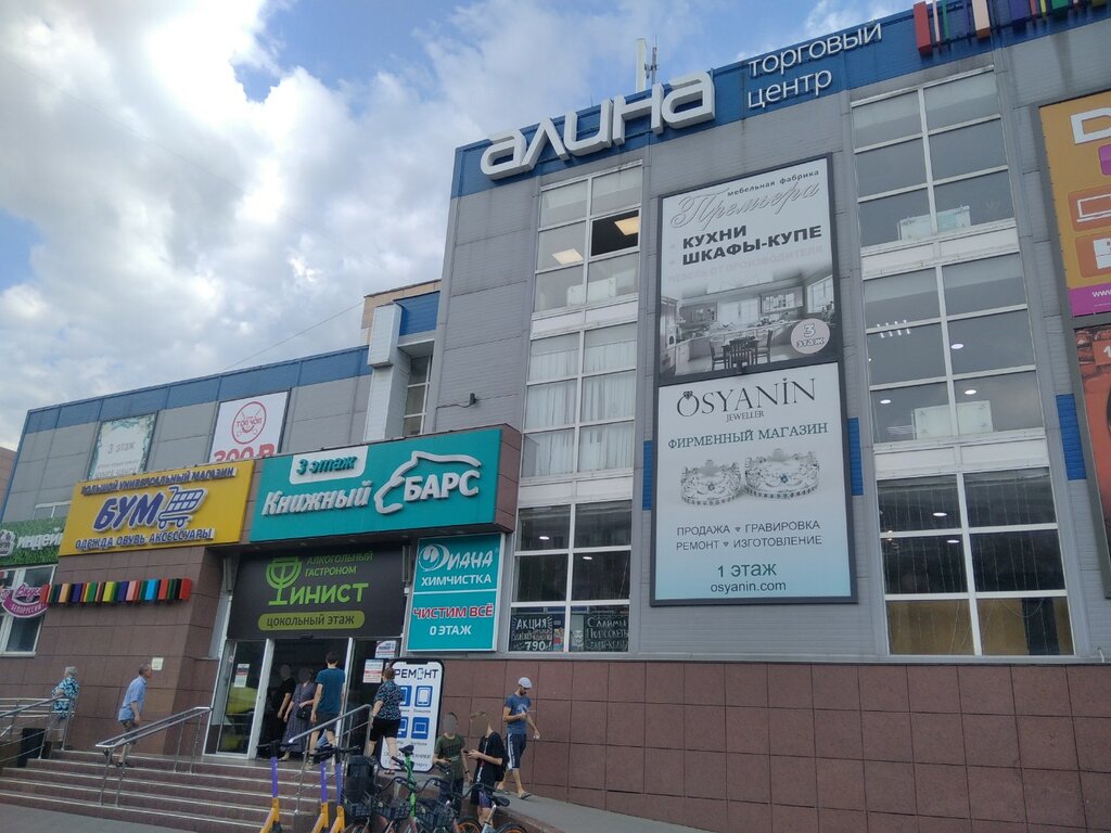 Алина - это книжный барс, игровая для ребёнка и детская парикмахерская, бутики с относительно недорогой и качественной одеждой, косметикой и прочим... Вкусная пицца и выпечка на продуктовом этаже, банкоматы и возможность неплохо провести время с ребенком.