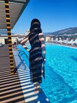 Отель очень понравился. Чистенько всегда. Огромный плюс бассейна на крыше. Из него не хотелось выходить. Всегда чистая вода. Оснащён всем необходимым. И конечно прекрасный вид на горы и море. Закаты шикарные 🤩🤩🤩. Завтраки хорошие, есть отличный выбор на любой вкус. Персонал очень вежливый и внимательный. Отдельное спасибо за это. Есть подземная парковка, очень удобно. До моря минут 10 пешком по тенистым улочкам. Однозначно рекомендую этот отель. Вся семья осталась довольна отдыхом. Прекрасный отель - это 50% залога отличного отдыха. Так и получилось. Всё супер. Спасибо команде отеля.