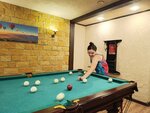Первые впечатления о сауне довольно хорошие, персонал вежливый, доброжелательно встречает и провожает гостей. Баня жаркая, бассейн большой, но прохладный и достаточно глубокий, я хоть и 1.70 ростом, но до дна еле еле касалась. Порадовал хамам, весьма просторный, очень приятный, почти весь вечер провела там в перерывах на бильярд и бассейн) Для бильярда место маловато, с некоторых сторон не удобно было играть, т.к мешала стена. Есть отдельная комната для того чтобы комфортно переодеться или отдохнуть. В туалете чисто, есть туалетная бумага и освежитель. Более весёлую атмосферу создала колонка и телевизор. Так же в зале с бильярдом есть место для отдыха и трапезы, большой стол который расчитан на 10 человек. Но, единственное что огорчило, то что в сауне нет фена, из за этого -1 звезда.