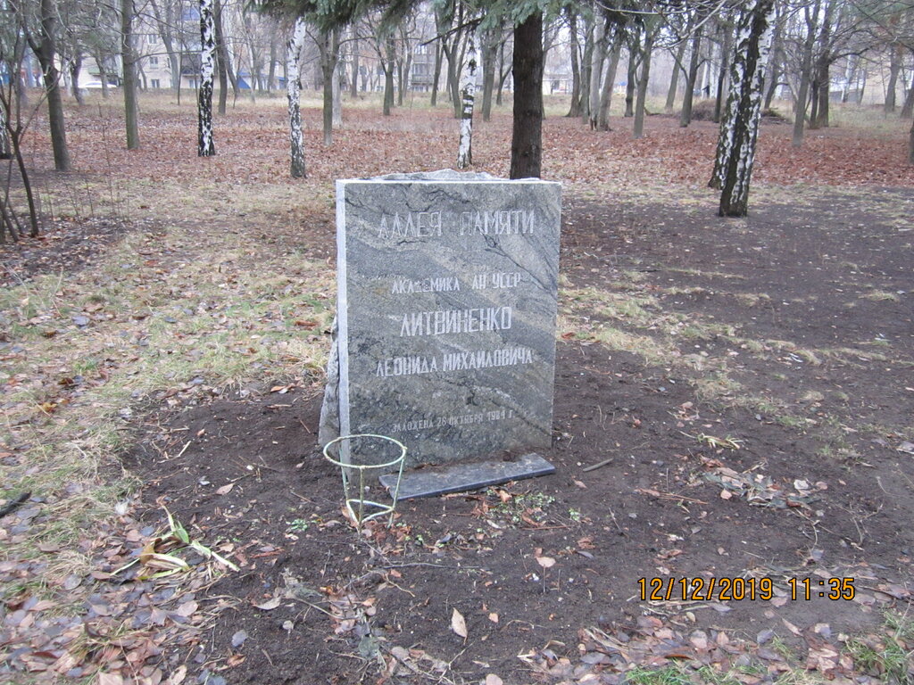 The alley was laid in honor of the first rector of DonNU, as well as the founder and first director of the Institute of Physical and Organic Chemistry and Carbon Chemistry, Academician Leonid Mikhailovich Litvinenko.