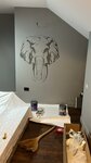 С менеджером работа понравилась, всё согласовали правильно. Но пришло, увы! Размеры цветов огромные, птицы съехали в угол, из теперь за шторой не видно, ветки не состыковались((