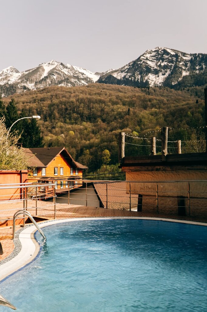 Сам отель очень классный! На территории баня и теплый бассейн, которые входят в стоимость проживания. Вид на горы потрясающий😍