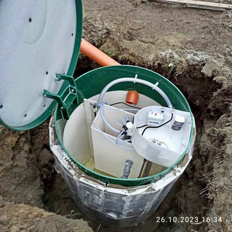 Очистка сточных вод для частных домов. Очистное сооружение является универсальным - предусмотрена возможность организовать как самотечный, так и принудительный отвод сточных вод.