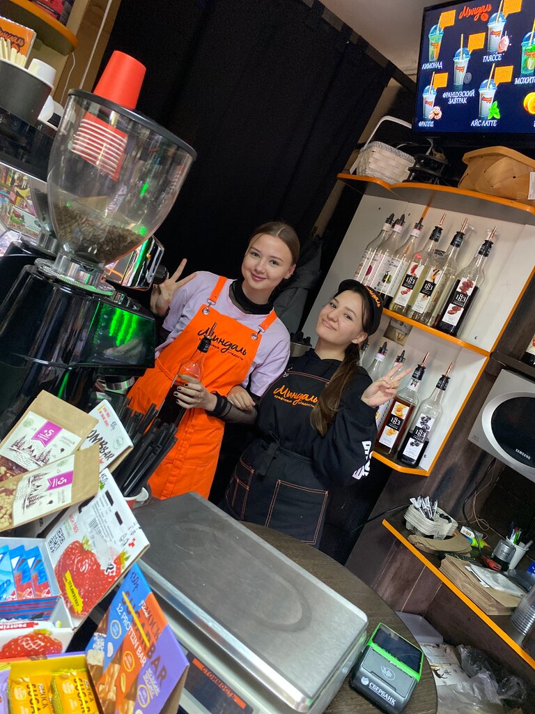 "Миндаль" — уютное и стильное заведение. Кофе просто великолепен. Бариста — настоящие мастера своего дела. Это прекрасное место, чтобы насладиться превосходным кофе и изысканными угощениями. Высококвалифицированный, очень дружелюбный и услужливый персонал, широкий выбор напитков и угощений. Приятные цены и скидки постоянным клиентам.