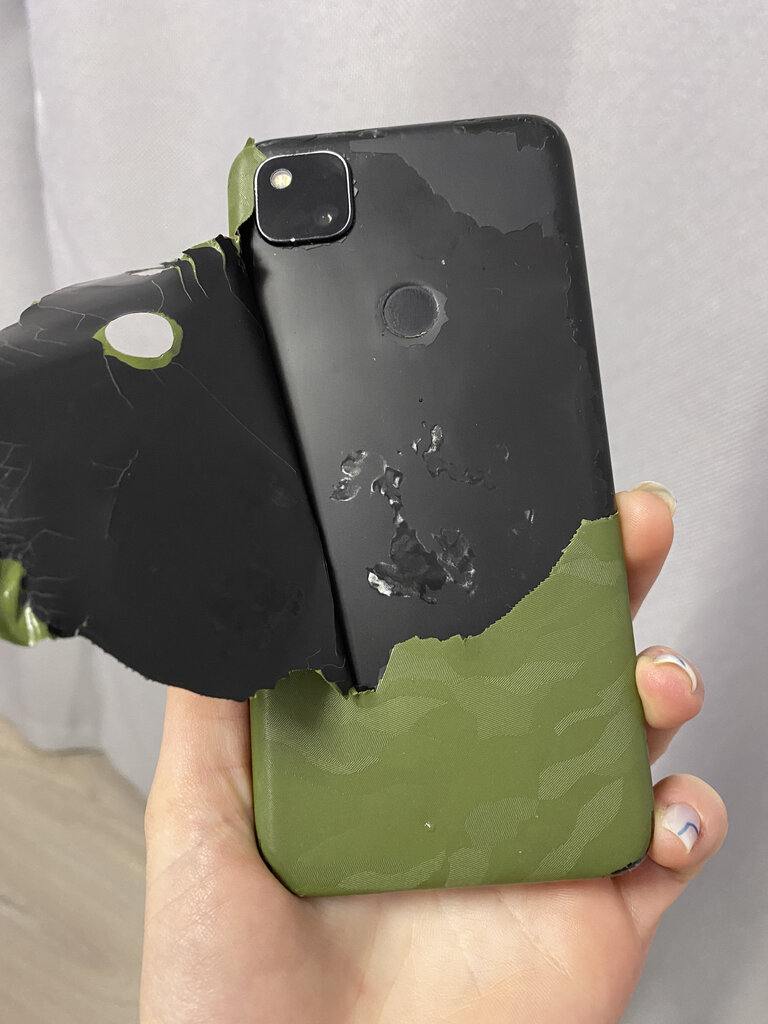 Испортили телефон пленкой, была в использовании пол года, от сколов после падений не защитила Когда решила ее снять, вместе с пленкой снялся и верхний слой покрытия задней крышки
