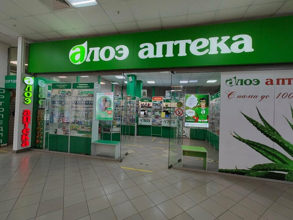 Аптека расположена в торговом центре. Современный дизайн, соответствует названию "Алоэ" Фармацевты внимательные. Цены приемлемые. Делала заказ онлайн. Очереди не было. Заказ собрали и доставили быстро.