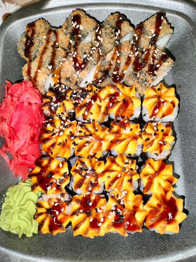 Самые вкусные суши - роллы. Замечательный повар. Обслуживание на высшем уровне. Есть доставка. Рекомендую это место.