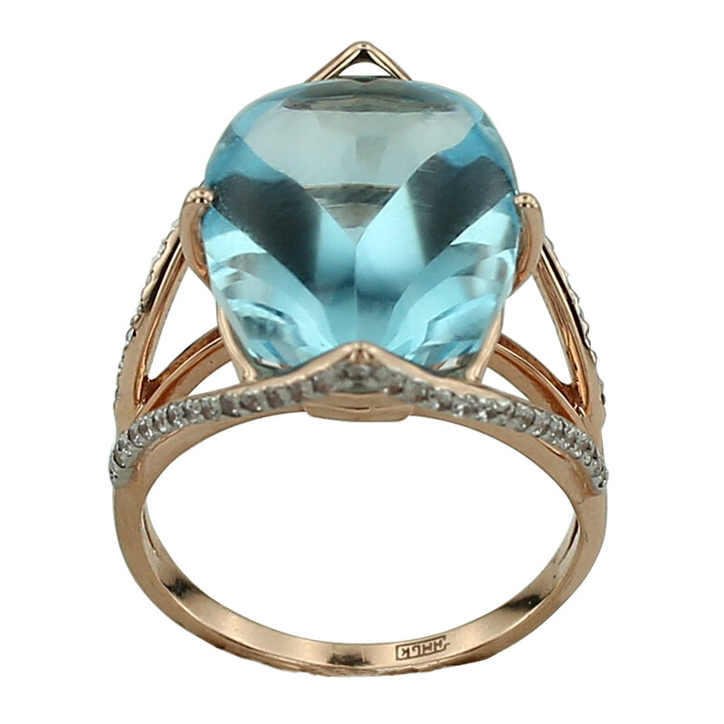 Кольцо 052РКцб выполнено из золота 585 пробы и украшено натуральными вставками: 12 Кубик циркония белый круг 1,0 мм, вес 0,096 карат1 Раух-топаз бриолет антик 12 мм на 12 мм, вес 5,63 карат Средний вес украшения - 3,25 грамм.