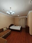Просторный двухкомнатный номер с одной двуспальной кроватью, двухместным раскладным диваном, двумя креслами и балконом.