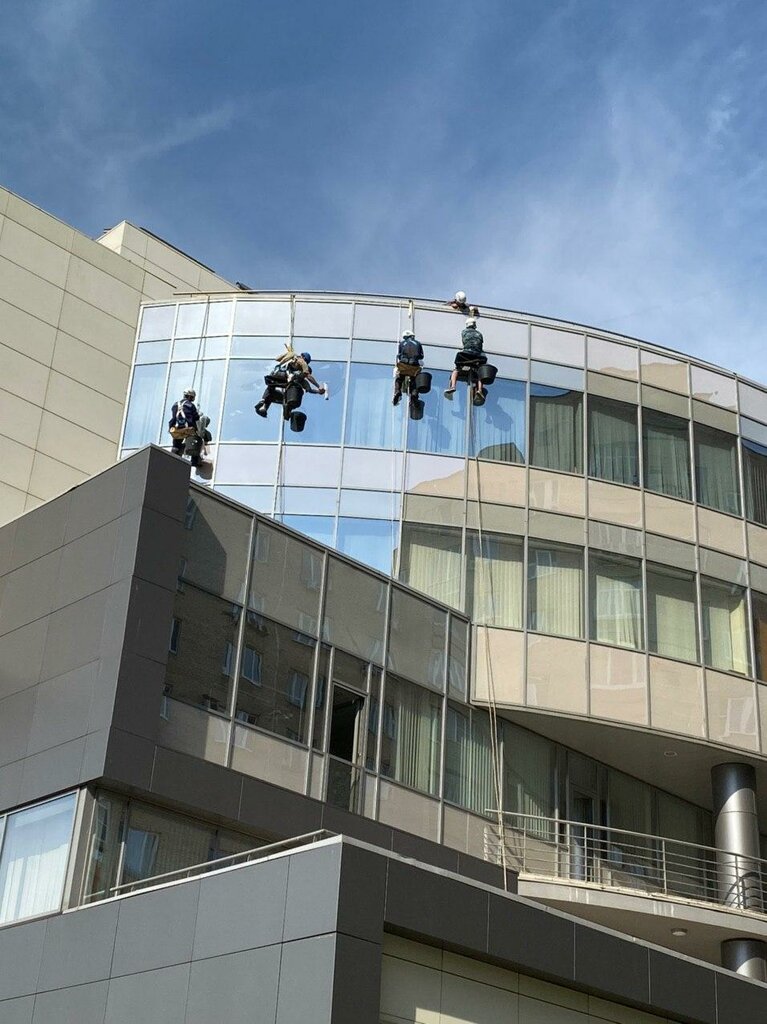 Мойка фасада промышленными альпинистами