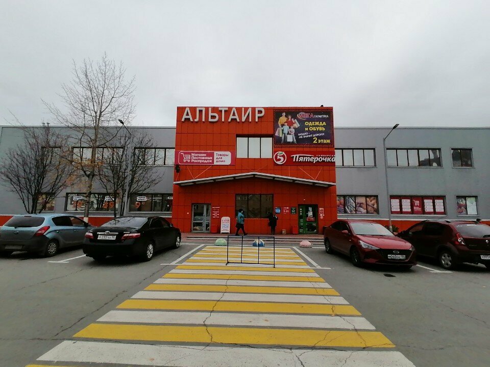 Хороший ТЦ, расположен на одной территории с Пассажем, есть въезд как со стороны ул. Кукуевицкого (один въезд), так и со стороны ул. Нефтяников (два въезда) движение на этом участке улицы двустороннее. На территории много парковочных мест. В ТЦ на 1-м этаже расположены - "Пятерочка", "Магазин постоянных распродаж", аптечный киоск, во входной группе под лестницей изготавливают ключи, а на 2-м этаже магазин промтоваров "Мега Галактика".