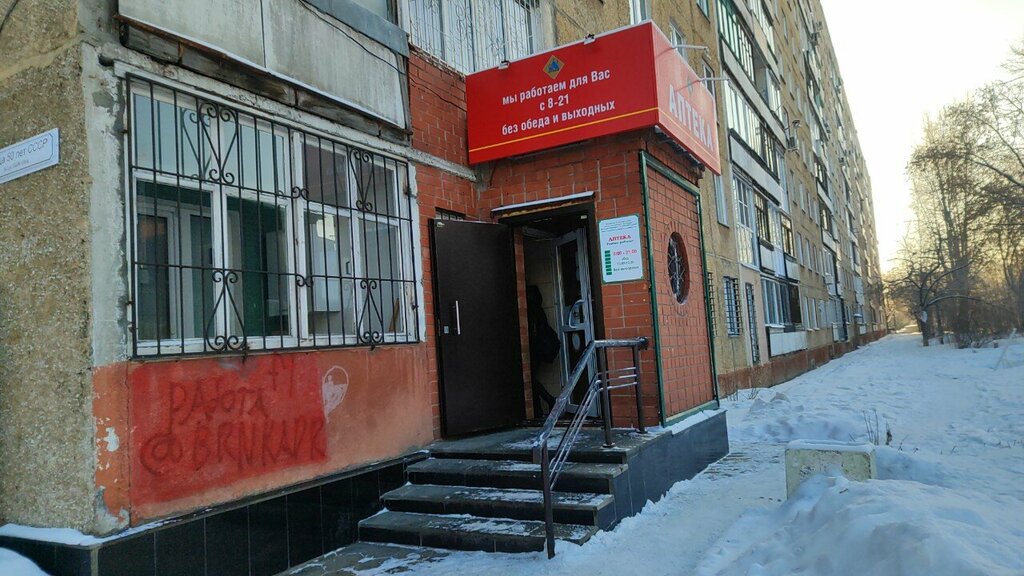 Аптека расположена в 15 м от остановки. Персонал очень доброжелателен. Ассортимент лекарств очень большой. Есть скидки пенсионерам. Обслуживание быстрое.