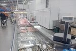 The supermarket is large and spacious. A lot of everyday household goods. There is a fresh baking department. There is a bakery inside, always fresh bread. A wide range of food products, we can say that there is everything from food. It is on the ground floor, and on the second floor there are clothing, cosmetics and household goods stores. The location is convenient and there is a large parking lot.
