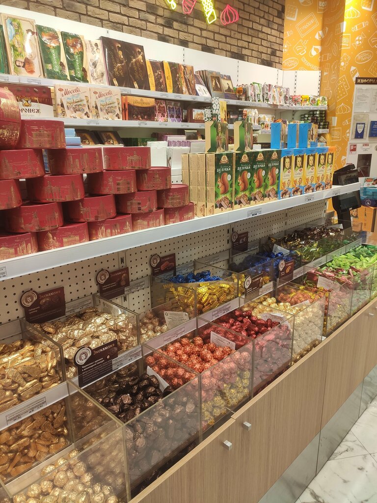 Отличный магазин с отличными отзывчивыми продавцами. Всегда проконсультирует, подскажут и ответят на все вопросы. Конфеты всегда свежие, не разу не попадалось просроченных конфет. Очень большой выбор. Цены приемлимые для аэропорта. Будете в аэропорту обязательно зайдите.