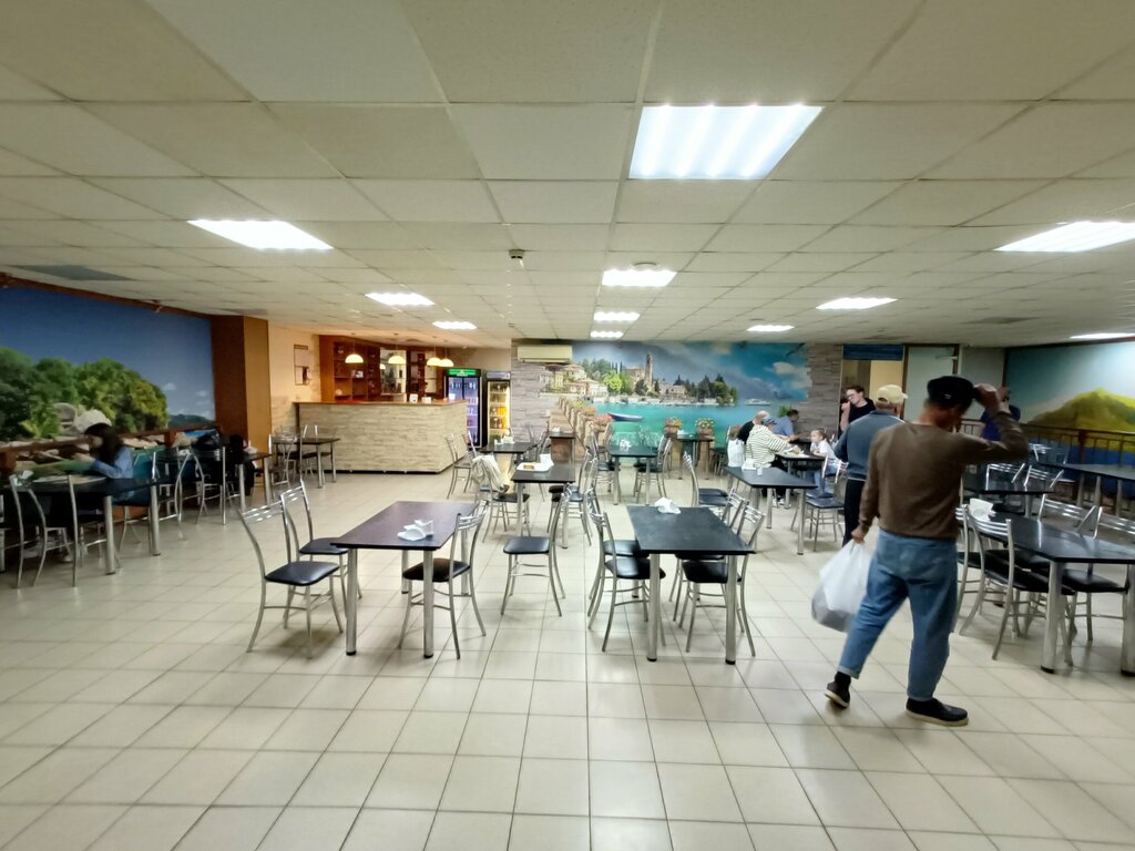Старый ремонт. Темно в зале. Отвратительный запах шин из соседнего склада . Находиться не приятно. Еда дорогая . Первое компот и второе один хлеб. 400р. В целом неприятное место.