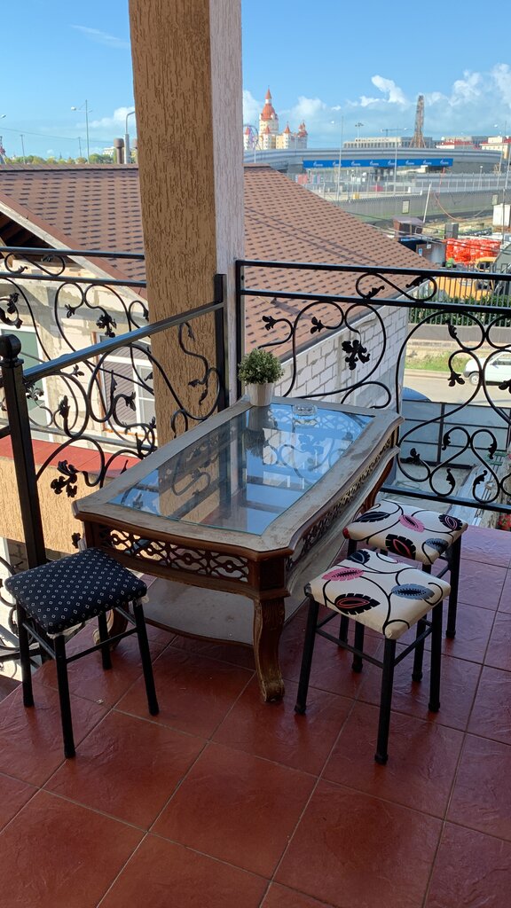Нам очень понравилось и расположение и сама гостиница, а хозяйка, полностью присоединяюсь ко всем отзывам, просто чудесная!!! В номерах есть все необходимое, полностью оборудованная кухня на каждом этаже, есть стиральная машина, гладильные принадлежности, во дворе мангал. Рядом, буквально в шаге пятёрочка, остановка транспорта, можно легко уехать на Розу Хутор. Да, море не очень близко, минут 20 ходьбы, но нам было интересно не сколько море, сколько погулять по олимпийским объектам, Сочи-парк.. и съездить на Розу хутор.