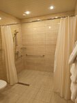 Кто из взрослых не мечтал хоть раз вернуться в детский сад?! Теперь у всех есть такая возможность - просто нужно поехать в Великие Луки и остановиться там в этом отеле, да, этот отель находится в здании советского детского сада 😉. Внутри , конечно, все не по-детски, но когда идёшь по коридору, все ещё чувствуешь запах манки и какао, конечно это психосоматика и другая статья😁. На самом деле там шикарная шведская линия на завтраки, одна из лучших из 60 городов, которые мы объединили, вот прям спасибо 🙏. Теперь номер, а точнее номера. У нас был большой номер на первом этаже, который предназначен для инвалидов и +ещё один примыкающий к нему номер для сопровождения, у нас, слава Богу, он не требовался по его прямому назначению, просто нас много. Итак, первое что бросается в глаза-чисто, везде чисто, даже окна на первом этаже без разводов, в ванных есть все необходимое и даже больше, чем обычно в отелях, видно, что следят на этим. Кровати высокие как у той принцессы на горошине, но это очень удобно, для понимания высоты кровати мы сделали фото, на нем ребёнок ростом 135. В номере есть фен, вода, холодильник, чай и др нужности. Отдельное спасибо за большую парковку, ох как порой этого не хватает. Если у вас электрокар, то тут есть зарядка для вас . А вот смутило меня отсутствие пандуса, нам он не требовался, но просто странно, номер такой есть, а пандуса нет🤔. Про персонал -девочки на завтраке красотки и умнички, очень общительные и доброжелательные , а вот на стойке регистрации прям сама серьёзность, но вежливые. Спасибо за прекрасно проведенное время в хорошем месте.