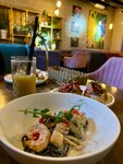 Зашли по рекомендации местных, но прям не в восторге. Салаты были на высоте, заказывали с креветками, их было ровно 3 штуки и с баклажанами. Горячее брали пасту с рваной говядиной, оказалось это обычные спагетти с гуляшом, не понравилось. Очень вкусный был чизкейк.