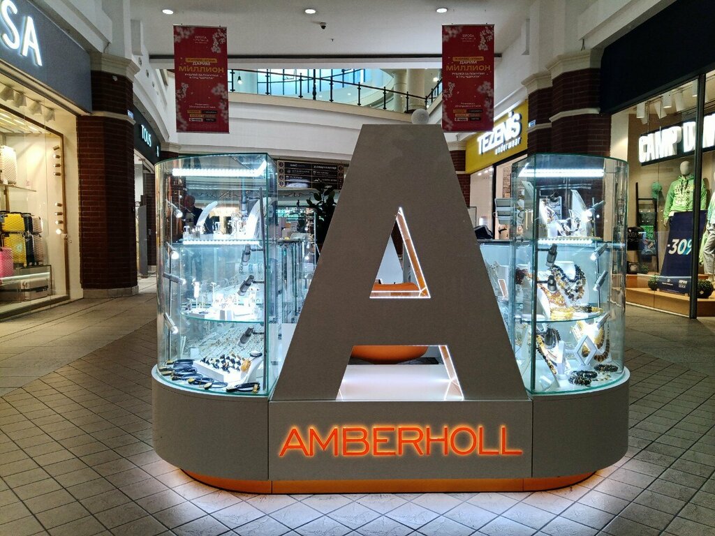 Неплохой островок от известной ювелирной компании Amberholl. Огромный выбор качественных изделий из янтаря в сочетании с кожей, металлами и другими материалами. Можно заказать на сайте и доставят по Калининграду на следующий день.