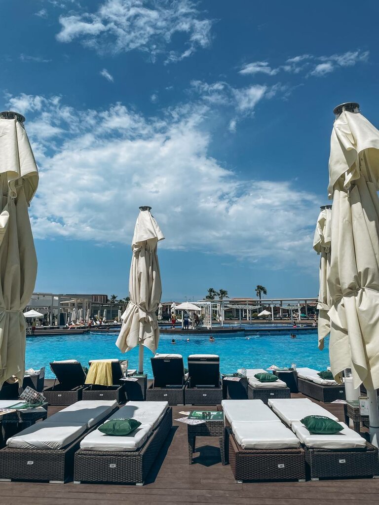 Nice big pool, lots of sun beds. Order food and drinks via WhatsApp. They bring everything quickly. Clean toilets, which are sufficient on the premises. A lot of locker rooms. There is little hope at sea, at least in June (the water is very cold), in this sense, the pool is a great opportunity to swim and comfortably sunbathe. For money in rubles - a little more than 1000. It's definitely worth it.