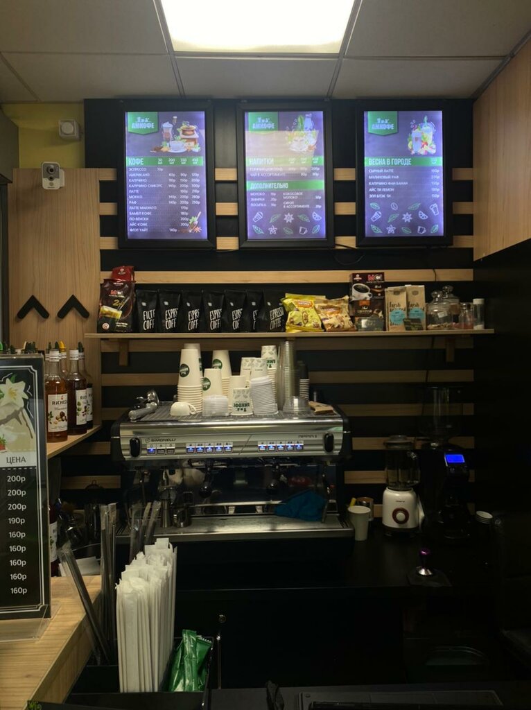 Удобное месторасположение, отличный выбор кофе! Это место внутри здания прямо-таки привлекает своими ароматами! Кстати кофе очень по приемлемой цене! Приятный выбор сопутствующих товаров, типа сиропов и так далее.
