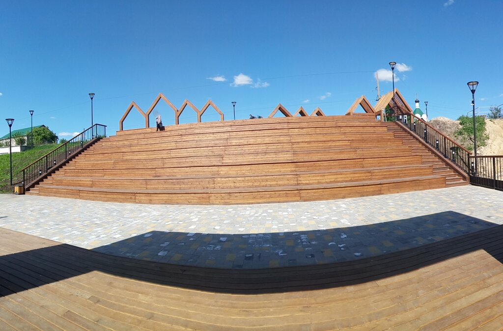Очень красивое место в нашем городе, часто проходят концерты, летом показ фильмов под открытым небом. Даже просто посидеть полюбоваться Доном, прекрасное место для прогулок с детьми. Чистая ухоженная площадка, имеются урны.